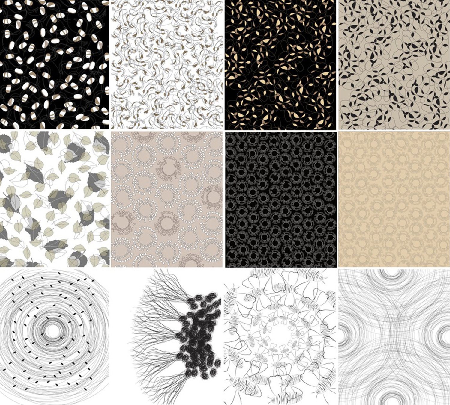 A number of different patterns were created, following the principles of visual order – from strict geometric and repetitive motifs in neutral and restrained colour schemes to more relaxed compositions with organic shapes in rich textural and colourful interpretations of the theme. Through their participation in the project, the students are helping to preserve and revitalise the knowledge and memory of sericulture. As part of their studies, they have combined this heritage with digital textile pattern design for various purposes. The result is a series of creative solutions for textiles intended for both fashion and interior design.